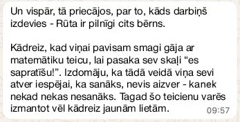 Gribu padalīties ar ļoti skaistu ģimenes dinamiku, kam esmu bijusi lieciniece pēdējo gadu laikā, iesaistīta kā matemātikas privātskolotāja.